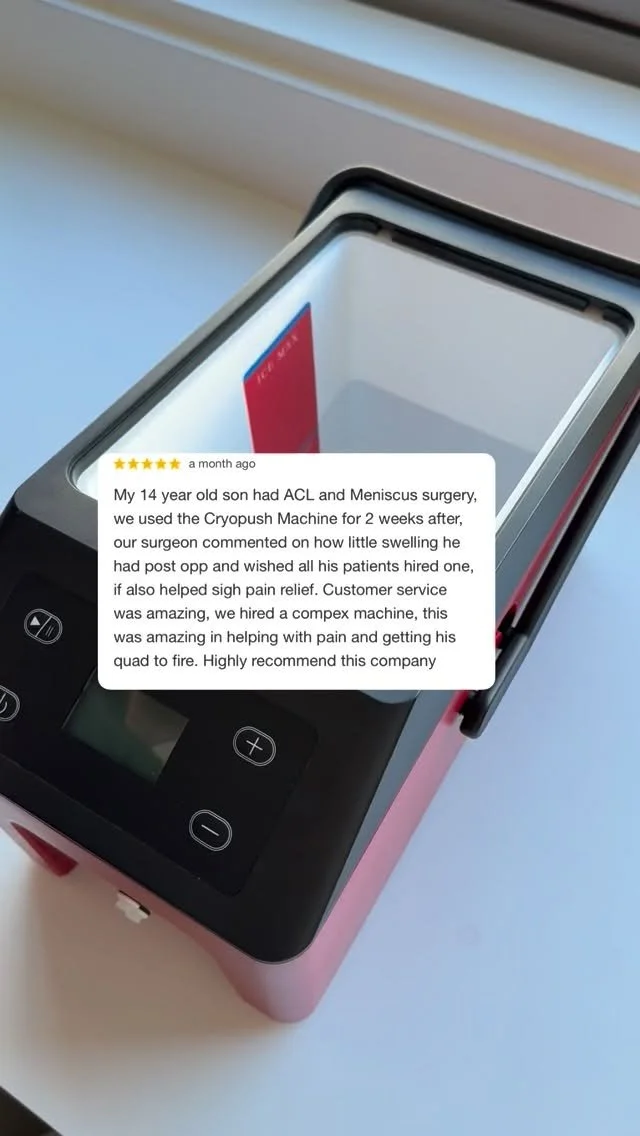 Skip the hassle of travelling to recovery clinics. With RecoveryTec, you can access professional recovery equipment from the comfort of your own home. Our CryoPush ice compression machines (similar to a Game Ready) provide the same style of therapy often recommended after surgery to control inflammation, reduce pain and support rehabilitation.